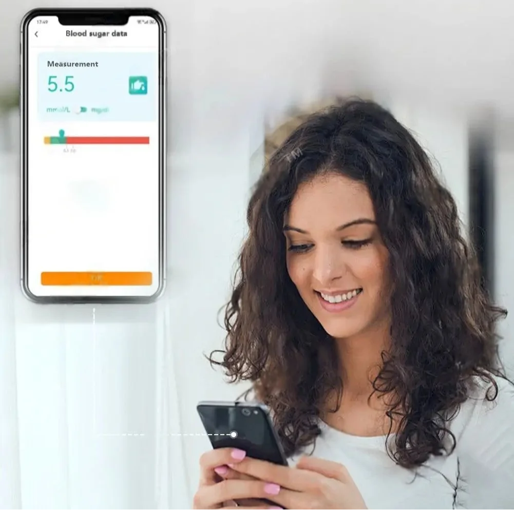 Grazie alla tecnologia ad alta precisione e alla connessione Wi-Fi integrata, il dispositivo Gluvitalia ti consente di monitorare la tua glicemia in tempo reale e sincronizzare automaticamente i dati con il tuo smartphone.